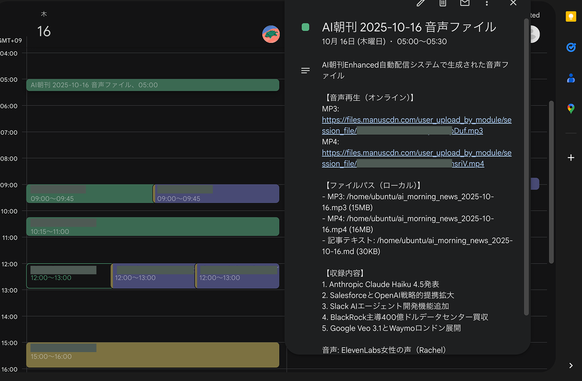 私が3〜4時間寝ている間にAIは何十ものサイトを巡回し、時には私の40〜50本の記事を精査して10〜20分の音声コンテンツに仕上げてくれます。