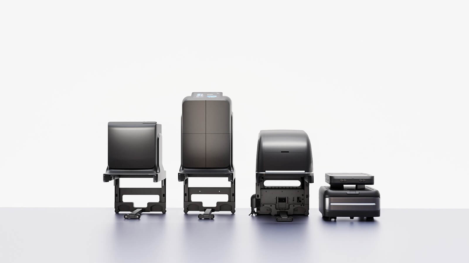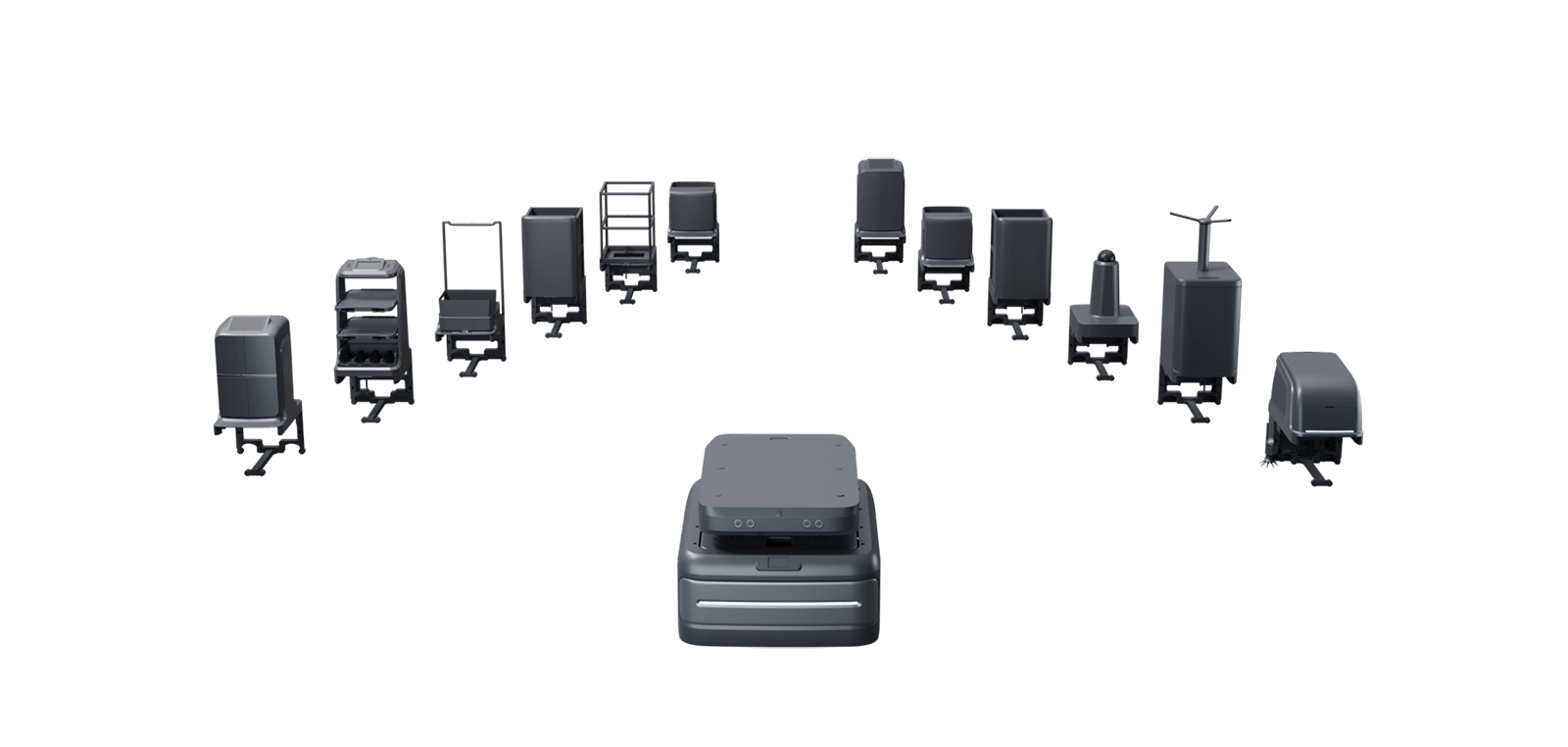 姫島氏:「『UP』はセンサーやモーター、バッテリーが詰まったコアロボットです。タイヤのを装着した四角い本体に、用途に応じて上部のユニットを載せ替えるという構造が特徴です。ロッカー型ならアメニティや検体の無人配送を、棚型なら配膳や回収を、清掃ユニットなら床の自動清掃、見回りユニットなら夜間巡回や簡易監視など。このように、1台で多くの役割をスイッチできるのがコアアイデアとなっています。