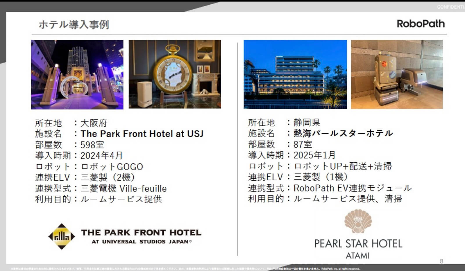 姫島 渉氏(以下、姫島氏):「当社は業務用のサービスロボットを展開する企業です。役割としては、ホテルでのルームサービス配送や配膳、清掃、工場での搬送・牽引をはじめ、最近は警備ロボットとしての見回りなどが主流です。一台で何役もこなせる当社のロボットを活躍させることで、さまざまな現場で起こる人手不足の解消を目指しています。
