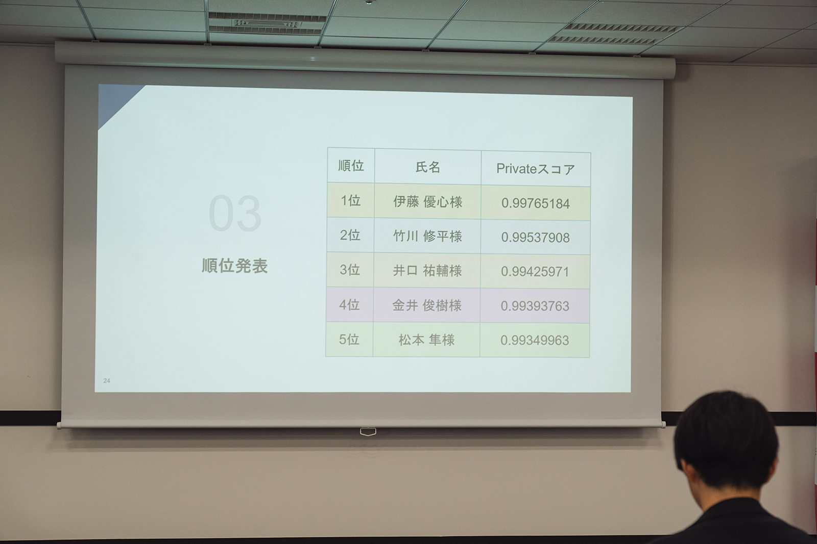 栄えある第1位に輝いたのは、伊藤さん。厳しい速度制約の中で、単一モデルの性能を極限まで高めるアプローチで頂点に立ちました。