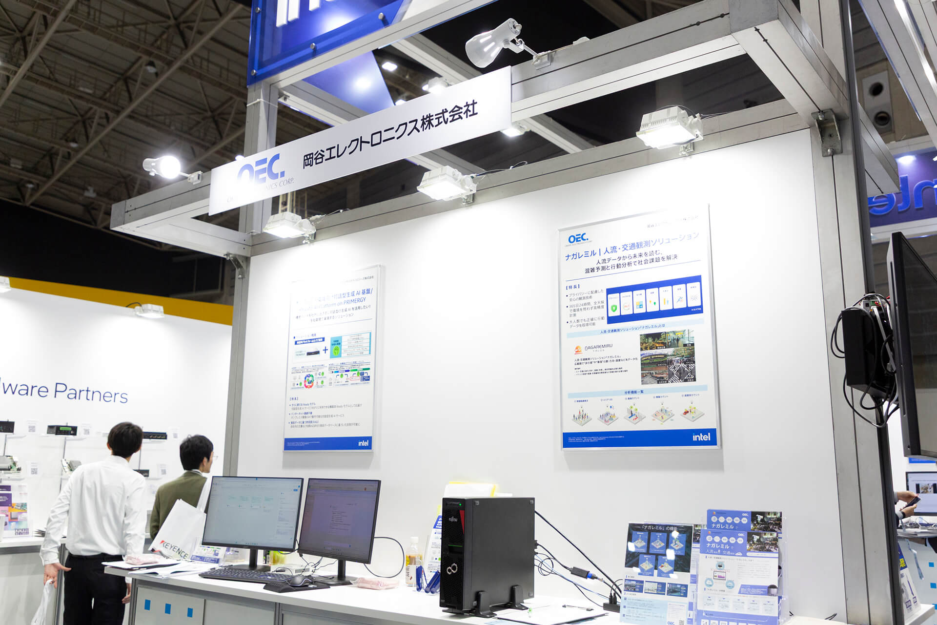 Intel社の正規販売代理店として知られる岡谷エレクトロニクスは、単なるCPU販売にとどまらず、AIソリューションを付加価値として提供する戦略を打ち出しています。今回のブースでは、ハードウェアとAI技術を組み合わせた、実践的な2つの主要ソリューションが展開されていました。